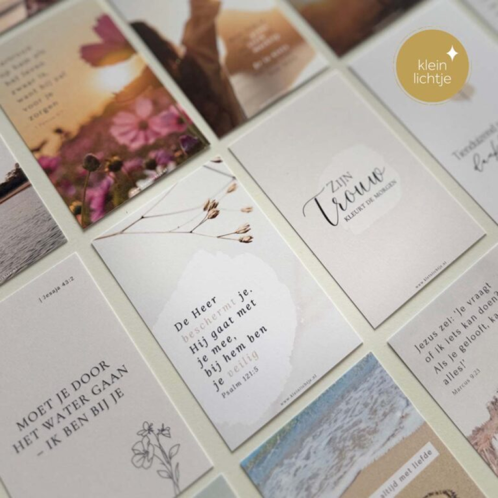 52 kaartjes voor elke week een nieuw kaartje met Woorden van waarheid. De gebruikte Bijbelteksten komen uit de Bijbel in gewone taal en de NBV21.